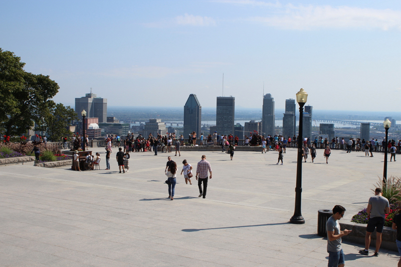 Zu Fuß verlassen wir den Friedhof und folgen der Masse, die sich zum Chateaux Mont Royal bewegt. Von dort hat man einen beeindruckenden Ausblick auf die Stadt. Es sind viele Sportler unterwegs, Läufer, Mountainbiker, Walker, … Am Sonntag betätigt sich anscheinend halb Montreal sportlich am Mont Royal. Viele plagen sich ab, auch wir machen einen längeren Spaziergang. Wir gehen durch einen wunderschönen Laubwald talwärts, bis wir schlussendlich ganz unten ankommen. Am Fuße des Bergs befindet sich ein Football-Stadion und nun wissen wir, warum die Polizei so präsent ist. Heute ist Gameday. Die heimischen Montreal Allouettes spielen gegen die RougeNoirs aus Ottawa. Natürlich gibt’s auch Tailgating, jedoch alles eine Nummer kleiner als bei der NFL. Aber die Steaks des Barbeque-Contests duften herrlich. Wir bummeln durch und machen uns dann wieder an den schweißtreibenden Aufstieg zum Auto. Wer hätte das gedacht, dass es in Kanada so heiß sein kann.