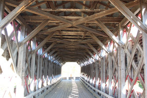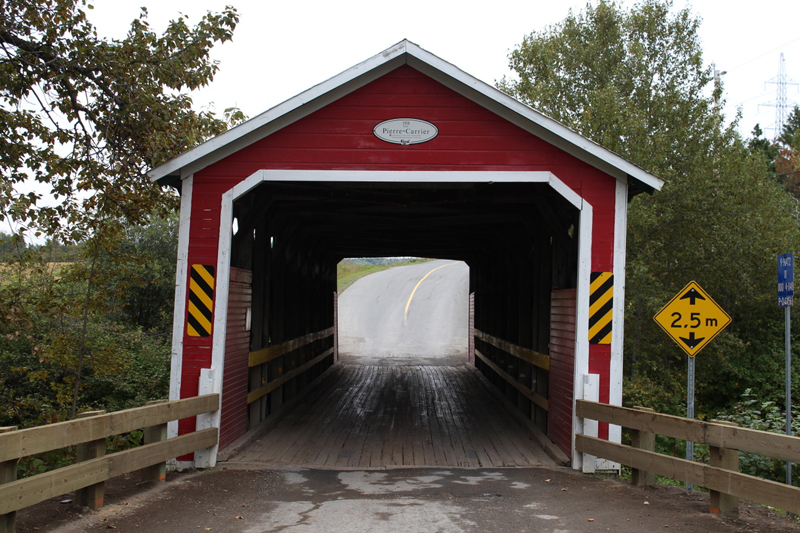 In Saint Ulric machen wir einen kurzen Abstecher zu einer weiteren überdachten Brücke. Die Pierre Carrier Brücke stammt aus 1918 und ein Plakat erklärt, dass es in der Provinz Quebec 91 solcher Brücken gibt. Nach Mont Jolie ist die Landschaft wieder mehr von Landwirtschaft geprägt. Man sieht Getreidefelder, Kühe, Pferde und Bauernhöfe.