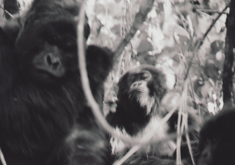 Francois achtet darauf, dass wir den Sicherheitsabstand von sieben Metern einhalten. Aber die Amis sind so damit beschäftigt, die Gorillas zu fotografieren und dabei nicht zu stolpern, dass sie Francois immer wieder sanft daran erinnern muss. Sie müssen sich auch von Oliver erklären lassen, wie der Blitz bei ihren Kameras ausgeschaltet wird, da Gorillas kein Blitzlicht vertragen. Wir beobachten einen jugendlichen und einen kleinen Gorilla, die sich balgen. Nach einiger Zeit hören sie auf und laufen in unsere Richtung. Da der Abstand ohnehin gering ist, laufen sie hautnah an uns vorbei. Ein Silberrücken läuft hinterher, und noch ehe uns Francois zur Seite drängen kann, versetzt der Silberrücken einer Amerikanerin einen leichten Schlag in den Magen, sodass sie stolpert und hinfällt.
