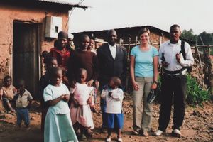 Um kurz vor 14:00 Uhr erreichen wir die Gorilla Nest Lodge. Wir beziehen unser Zimmer und gehen anschließend ins Restaurant zum Mittagessen (Burger für Wolfgang und Chicken für mich). Für 15:00 Uhr vereinbaren wir mit einem Lodgeangestellten eine Dorfbesichtigung. Wir verlassen die Lodge beim „Hinterausgang“ und spazieren ins nahe gelegene Dorf. Im Nu sind wir von einer Menge Kinder umringt. „What’s your name?, How old are you? ...“ Bei einem kurzen Halt singen uns die Kinder dann noch ein englisches und ein einheimisches Lied vor. Danach gehen wir weiter ins Nachbardorf, wo wir den Bürgermeister in seinem Haus besuchen.
