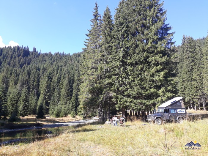 Nachdem wir beim Auto zurück sind, packen wir zusammen und fahren ins Tal. Wir finden einen netten iOverlander-Platz an einem Bach in Arpaşu de Sus.
