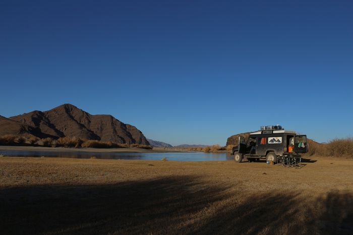 Die Guided Tours packen ihre Sachen und verlassen das Festivalgelände in ihren SUVs, vorwiegend Toyota Landcruiser. Eine riesige Staubwolke zieht durch das Tal. Wir packen uns ebenfalls zusammen und suchen uns einen Stellplatz am Fluss. Den Abend verbringen wir bei Deedrah und Valentin im Vorzelt, wo wir gemütlich bei Kerzenschein zusammen sitzen und unseren letzten gemeinsamen Abend genießen.