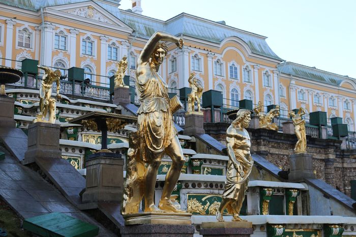 Der Palast ist beeindruckend. So viel Gold und Prunk. Vollkommen unverständlich ist für uns, dass Stalin den Palast im 2. Weltkrieg selbst in die Luft gesprengt hat, nur um eine Silvesterparty der Deutschen im Palast zu verhindern. Wie viel Geld und Geschichte damit zerstört wurde! Die Bombenangriffe der Deutschen haben gar nicht mehr viel Schaden anrichten können. Nach dem 2. Weltkrieg lag der Palast in Schutt und Asche. Nur ein paar Außenmauern standen noch und ein Teil der Innenausstattung wurde vor der Zerstörung in Sicherheit gebracht. Der ganze Palast musste vollständig neu errichtet werden. Was wir sehen, ist also noch keine 100 Jahre alt.