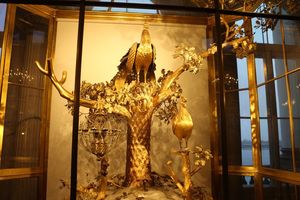 Die Zeit verrinnt und nach drei Stunden, die wir allein für ein Stockwerk benötigt haben, machen wir eine kurze Pause im Museums-Café. Nach einem Snack geht es weiter ins nächste Stockwerk. Es gibt so viel zu sehen! Eines der absoluten Highlights ist die goldene Pfauenuhr, die immer noch funktioniert.